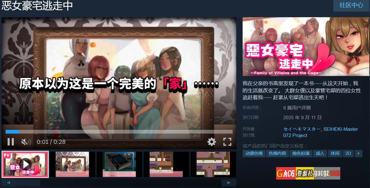 《恶女豪宅逃走中》是一款以“颓废”和“背德”为核心主题的日系角色扮演游戏。游戏的官方中文版为玩家呈现了一个充满暗黑风格的世界,玩家将扮演一名试图逃离恶女统治下的少女,展开一场关于救赎与背叛的冒险。